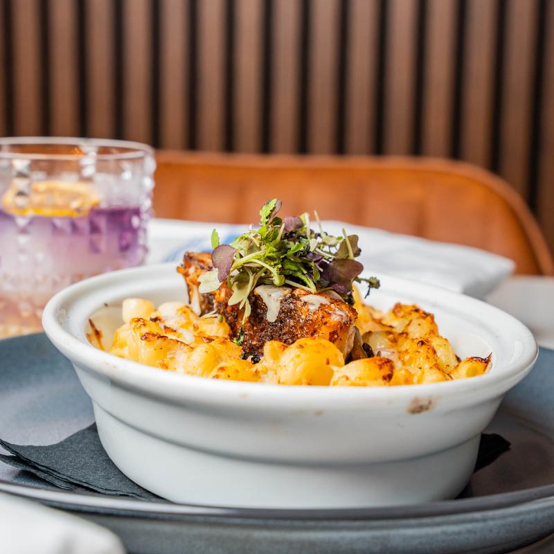 Cheshire pork belly, cavatappi, fontina, mozzarella, and smoked gouda.