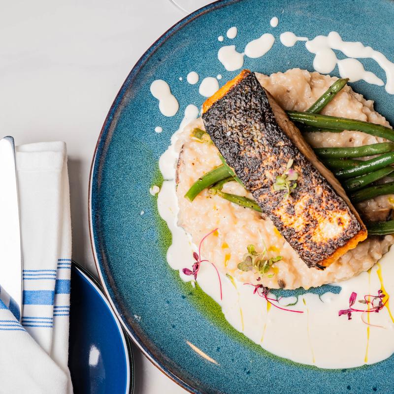 Mushroom risotto, haricots verts, and lemon brown butter.