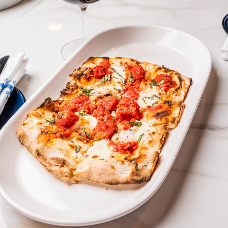 Filetto di Pomodoro, mozzarella, garlic, basil, and EVOO.